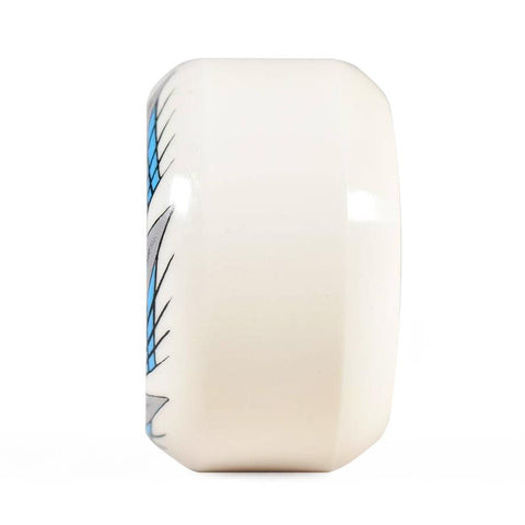 Bones SPF Formula 'Pool Sharknado' 60mm wheels with a super 104a hardness in white. The Bones Skatepark Formula is a high quality smooth urethane specifically formulated to resist flat spotting on slick or smooth surfaces while maintaining a higher rebound for a quick response and a faster roll. The P5 Side-cut shape feature sidecut walls designed for more stability, less drag and longer grinds. Perfect for skateparks.