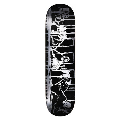 Fucking Awesome and Krink partnered on a skateboard deck based on a painting made with Krink by Fucking Awesome's co-founder, Dill featuring a Silver foil "Last Supper" print on bottom with Embossed "Fucking Awesome". Shape #1 features a steeper concave with the "shovel" style nose. Made in Mexico by BBS/Generator.